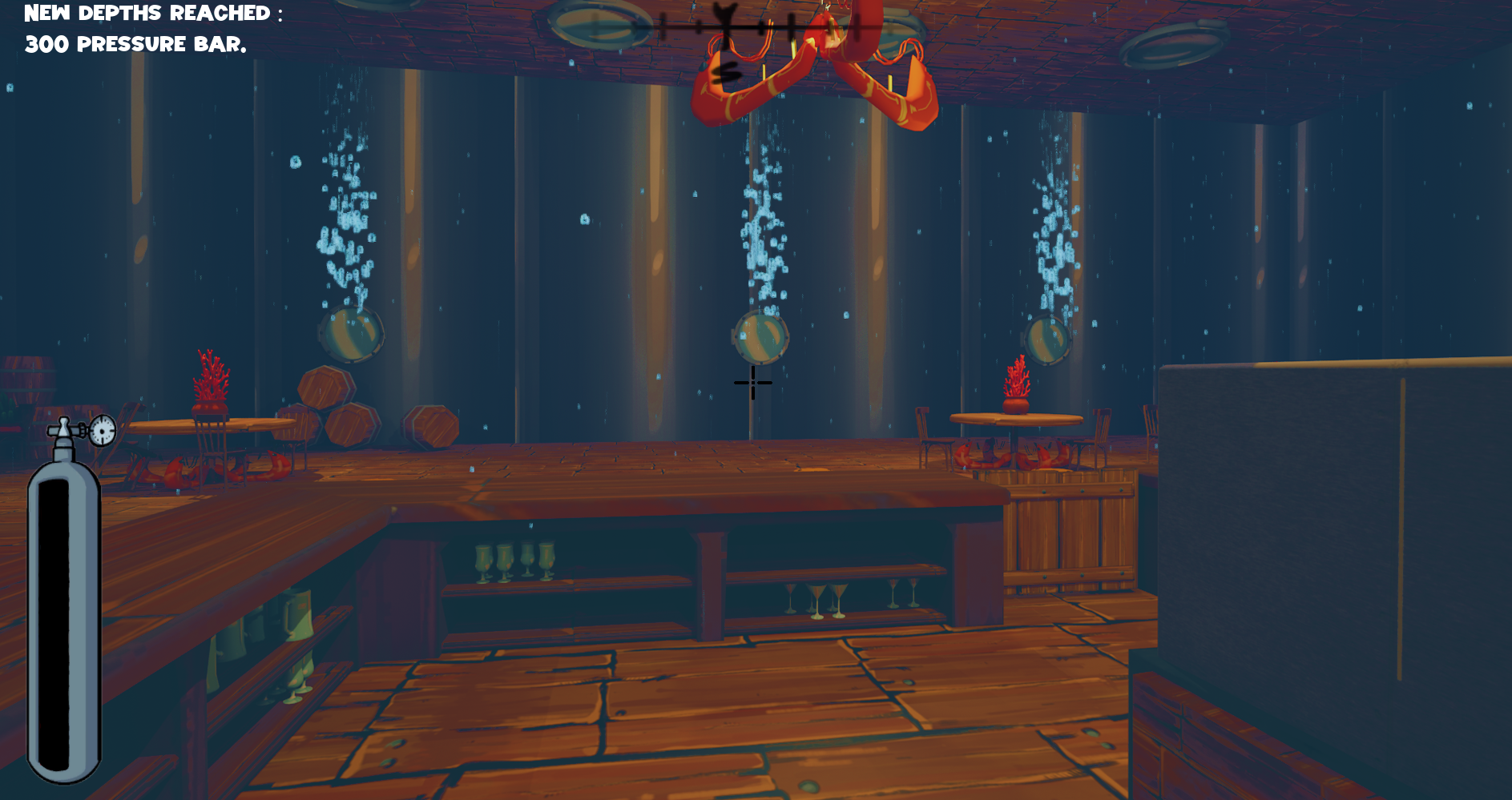 À chaque victoire, le bar s'enfonce plus profondement dans l'océan et la pression sous-marine augmente.
